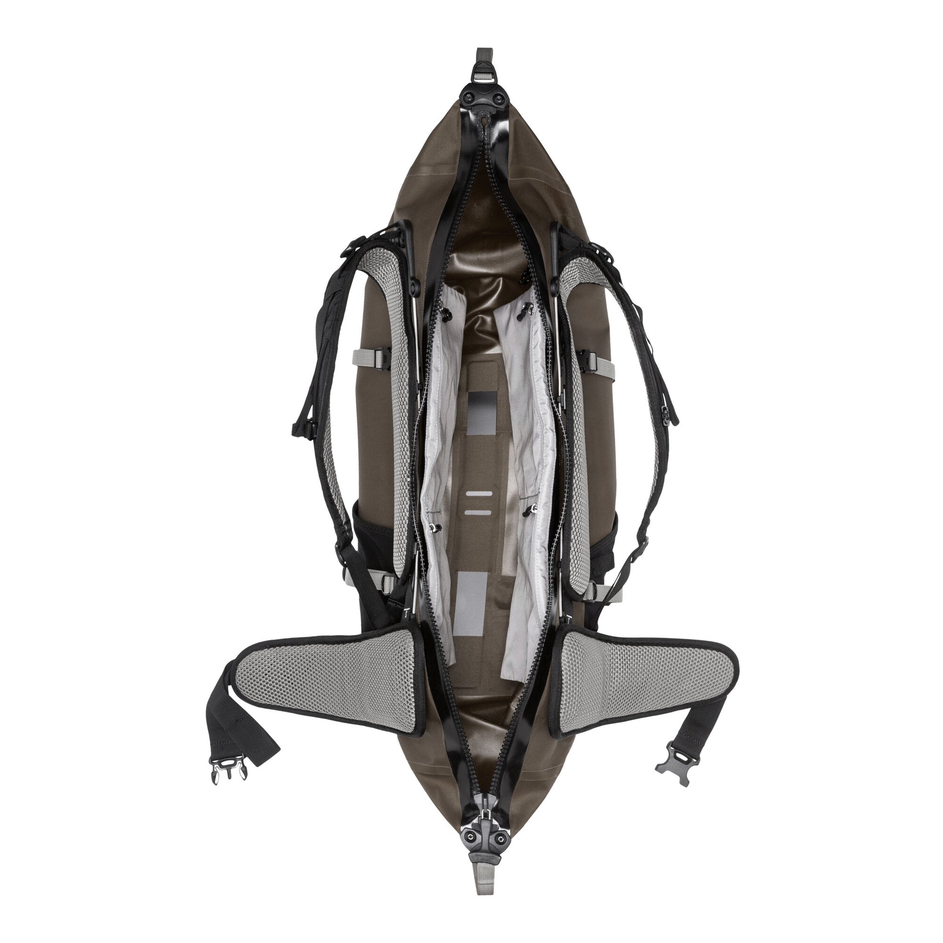 The first waterproof backpack that opens like a travel bag offers a new level of convenience for your outdoor adventures and short trips! Anyone who’s ever faced the task of having to quickly locate a particular item in the depths of a backpack will love the new Atrack! The Atrack outdoor backpack zippers open like a suitcase, greatly simplifying your packing logistics by giving you an at-a-glance overview of – and immediate access to – the individual items in your pack. You can also set the Atrack down on its front side to keep the harness system clean and dry. The Atrack not only spares you the inconvenient rummaging through your backpack, it allows you to do without a rain cover. No matter whether you get caught in a downpour or have to swim through a river, your gear will remain absolutely dry! This is because the pack’s PVC-free nylon material and TIZIP zipper (updated version) are 100% waterproof. By the way, the zipper is located on the side that touches your back, which also protects against theft in a crowd. The ingenious design of the active-travel backpack gives you maximum functionality when you’re out trekking, biking, ski-touring, canoeing, or rising to meet any other challenge in the great outdoors. The Atrack also feels right in the city and accompanies you faithfully as a streamlined pack for short trips. The Atrack comes in three sizes, three colours and an extensive range of accessories so that you can quickly customize it to your every adventure. Choose your favourite and start your story!