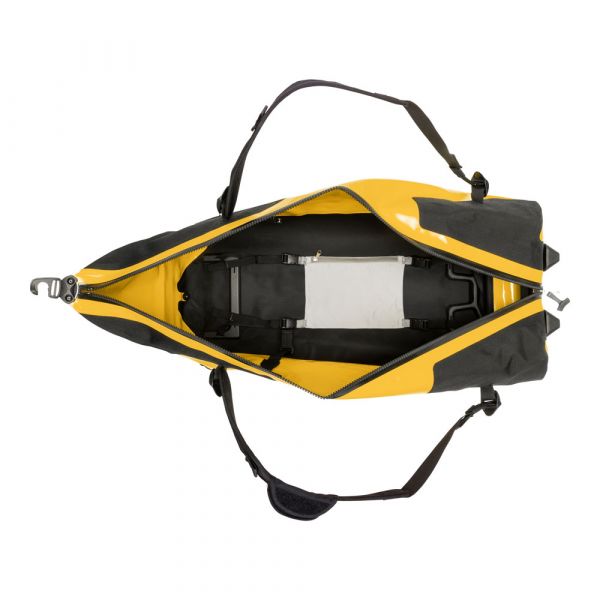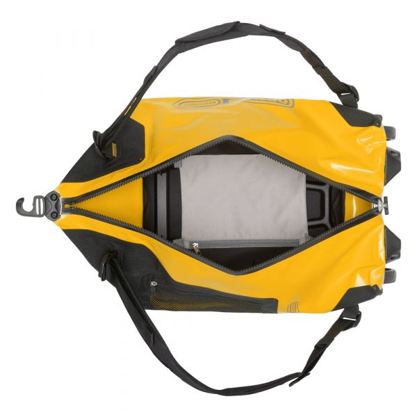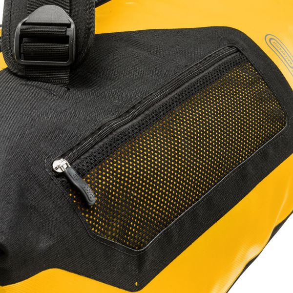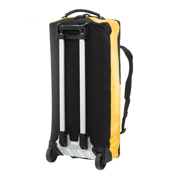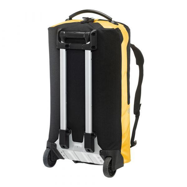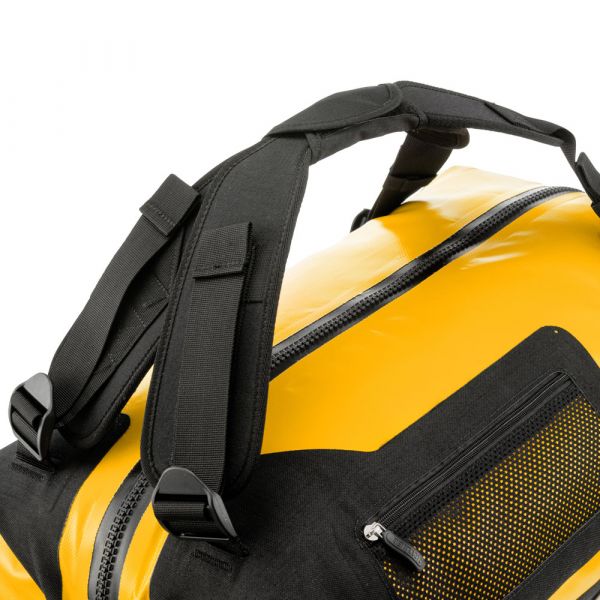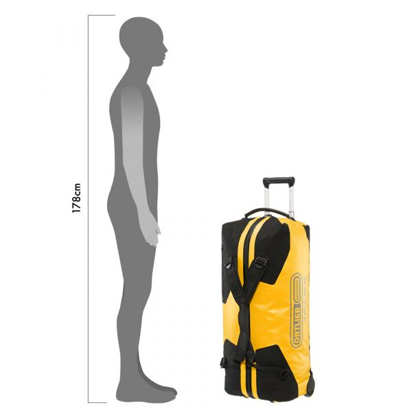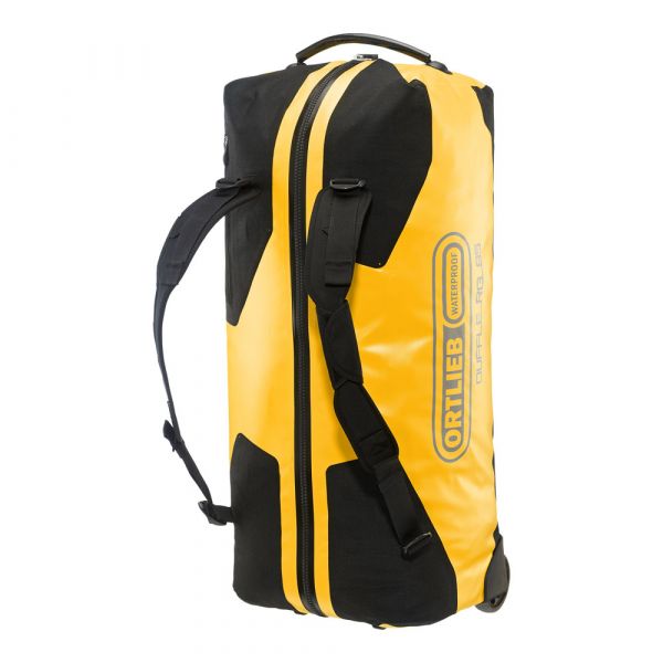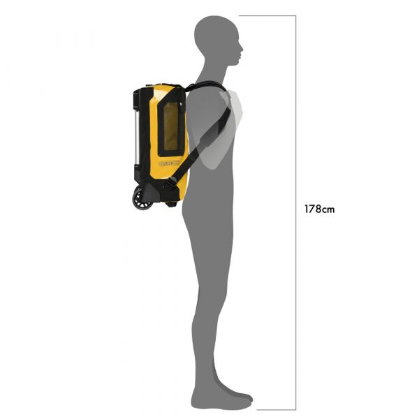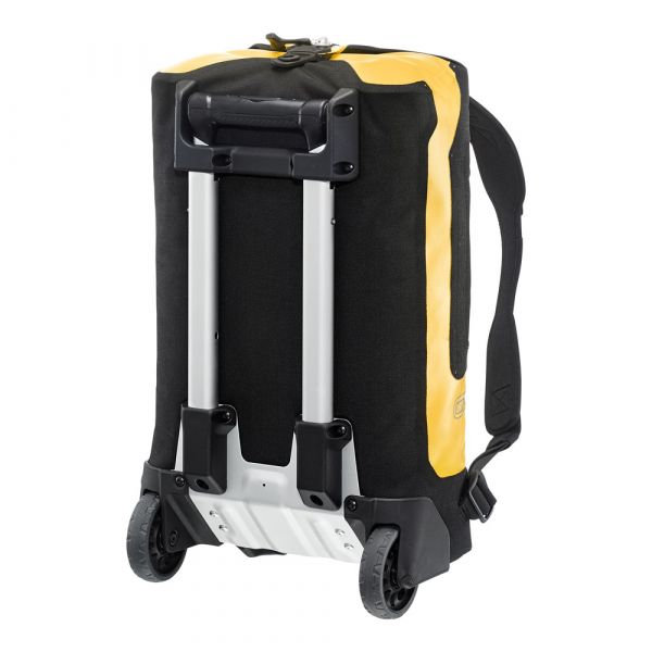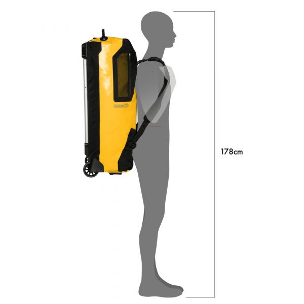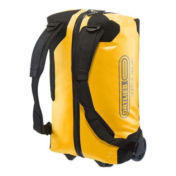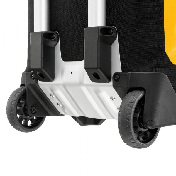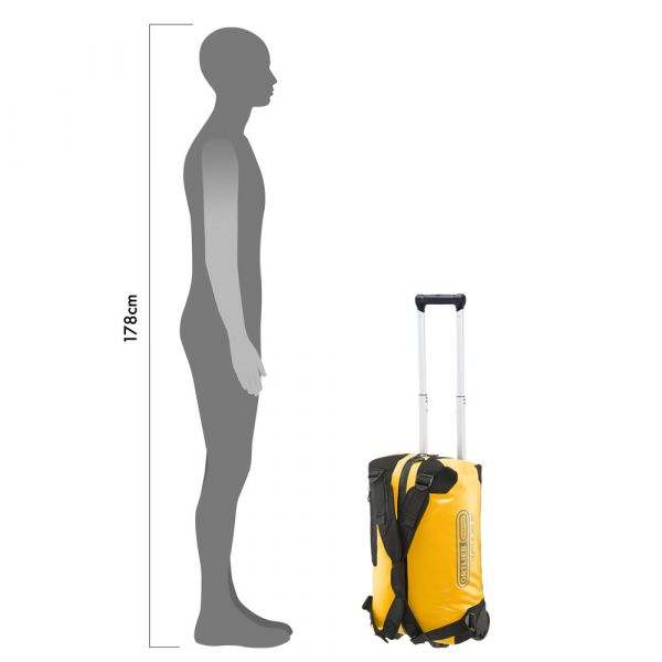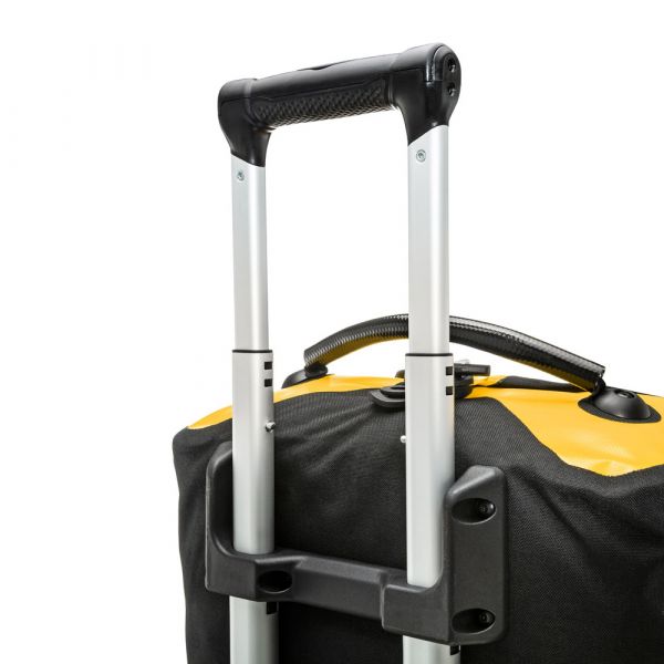 Planning a weekend trip, an active vacation or an overseas journey? Looking for a maximally durable and waterproof travel bag that offers additional comfort? If yes, you should definitely consider the ORTLIEB Duffle RG. In contrast to the Duffle RS, which was conceived for expedition-level use, the Duffle RG is outfitted with an aluminum wheel frame that makes it especially easy to tow. Indeed, the bag’s large wheels, telescope aluminum handle and impact-proof underside give it excellent off-road handling. Free standing when full or empty, the ORTLIEB Duffle RG can be moved in three different ways. It can be wheeled using the telescope handle, carried with one hand or worn as a backpack. The waterproof polyester fabric and the 10-mm waterproof TIZIP Masterseal zipper (updated version) ensure that the bag’s contents remain optimally protected in all conditions. Thanks to its compact size (55 x 35 x 23 cm), the smallest Duffle RG offers a special advantage: it qualifies as a carry-on aboard commercial flights. But despite its dimensions, it still offers 34 litres of stowage space and is therefore an ideal bag for short trips.