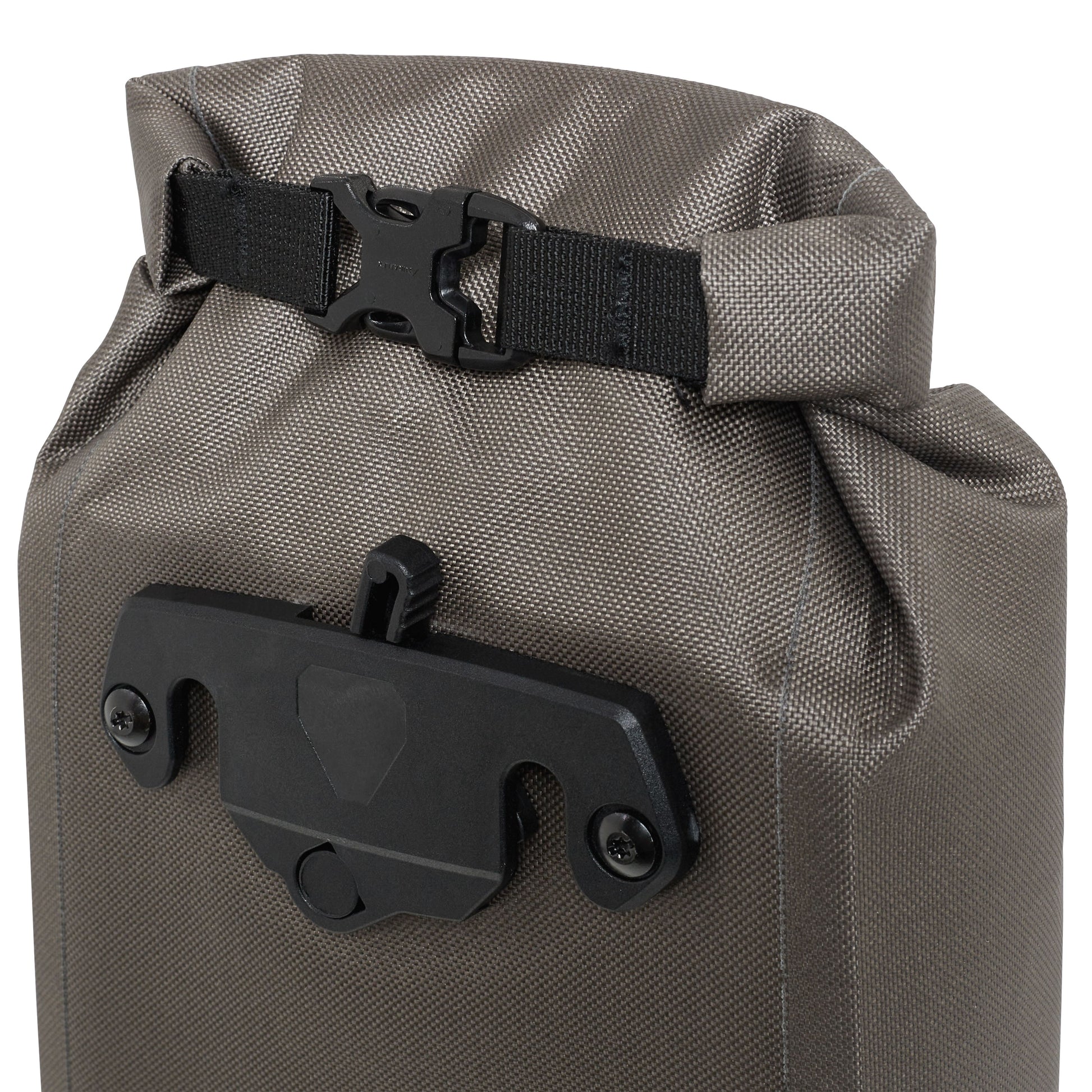 The waterproof Fork-Pack offers even more storage space for your next Bikepacking adventure. This practical fork bag weighs as little as 290 grams including the adapter (for the 4.1 L size, 315 grams in the 5.8 L size). With the help of the QLS adapter, this ultra-light bag can be mounted on forks with integrated accessory mounts, as well as on forks without special accessory mounts, as long as the fork legs have an untapered diameter between 30 and 42 mm. In fact, using the supplied adapters, you can attach the bag to any straight, vertical tube of that diameter. The bag features ORTLIEB’s tried-and-true roll top closure, and the included Quick-Lock S adapter system allows you to attach and detach the bag in no time. The Fork-Pack is made of PVC-free nylon fabric and sustainably produced in Germany.