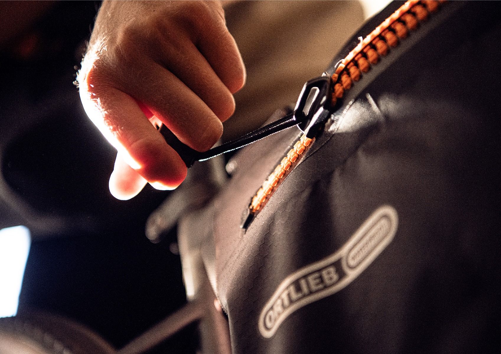 Bikepacking is also about embracing minimalism. You head off on your bike into the great outdoors, away from it all for an extended period. The amount of gear you can take is limited! The ORTLIEB Frame-Pack allows you to exploit your bike frame to create valuable stowage. Thanks to its lower center of gravity below your top tube, the Frame-Pack makes for an ideal stowage location for heavy gear such as tools, camping stoves and food supplies. The proven, waterproof nylon fabric and waterproof Tizip zipper (updated version) ensure that your things remain absolutely dry even in the most inclement weather. Mounting the Frame-Pack with the ultra-strong Velcro straps to the top tube, seat tube and down tube is a snap. The Frame-Pack is suitable for mounting on carbon frames and available in a 4 and 6-litre sizes – depending on your bike frame. The Black Matte version has a zipper on the right side and interchangeable, individually positional hook-and-loop fasteners.