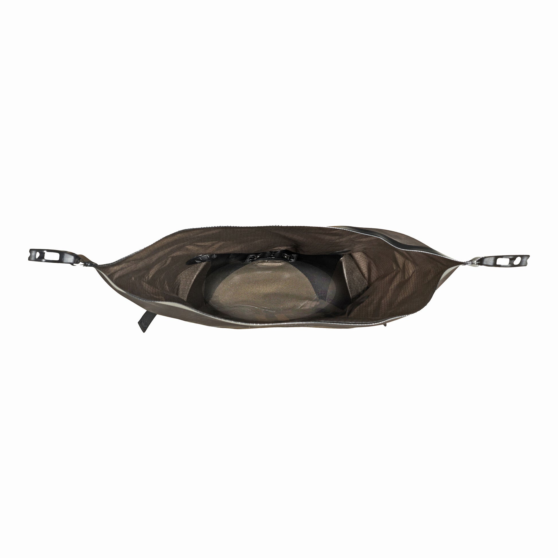 The internal reinforcement and five compression straps ensure that the contents are packed tightly and securely. A valve with a handle strap helps to compress the pack volume, and the elastic cord on the outside allows for the attachment of additional gear. To prevent damage from tire contact, a protective plate is attached to the underside of the Seat-Pack QR, which also doubles as a fender.