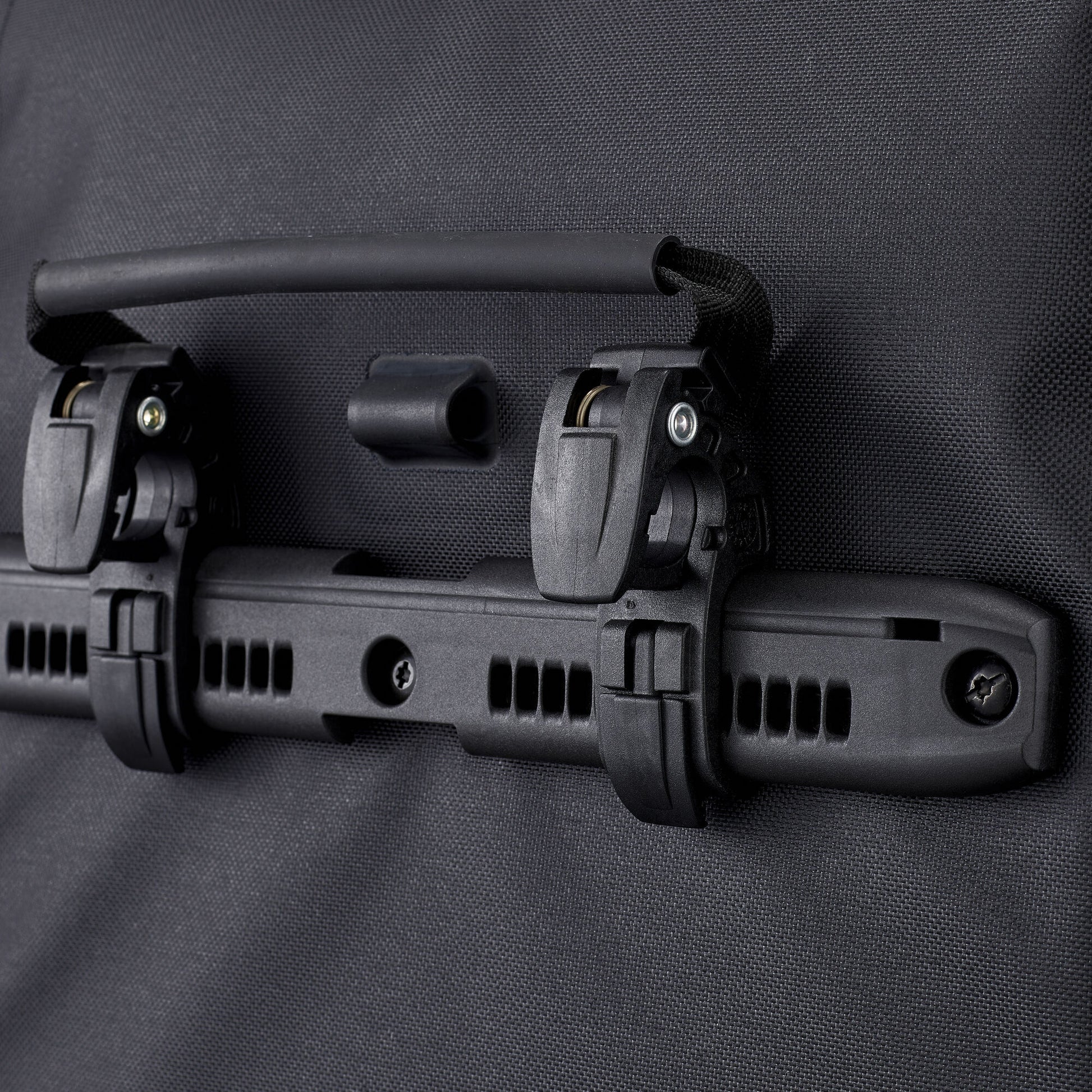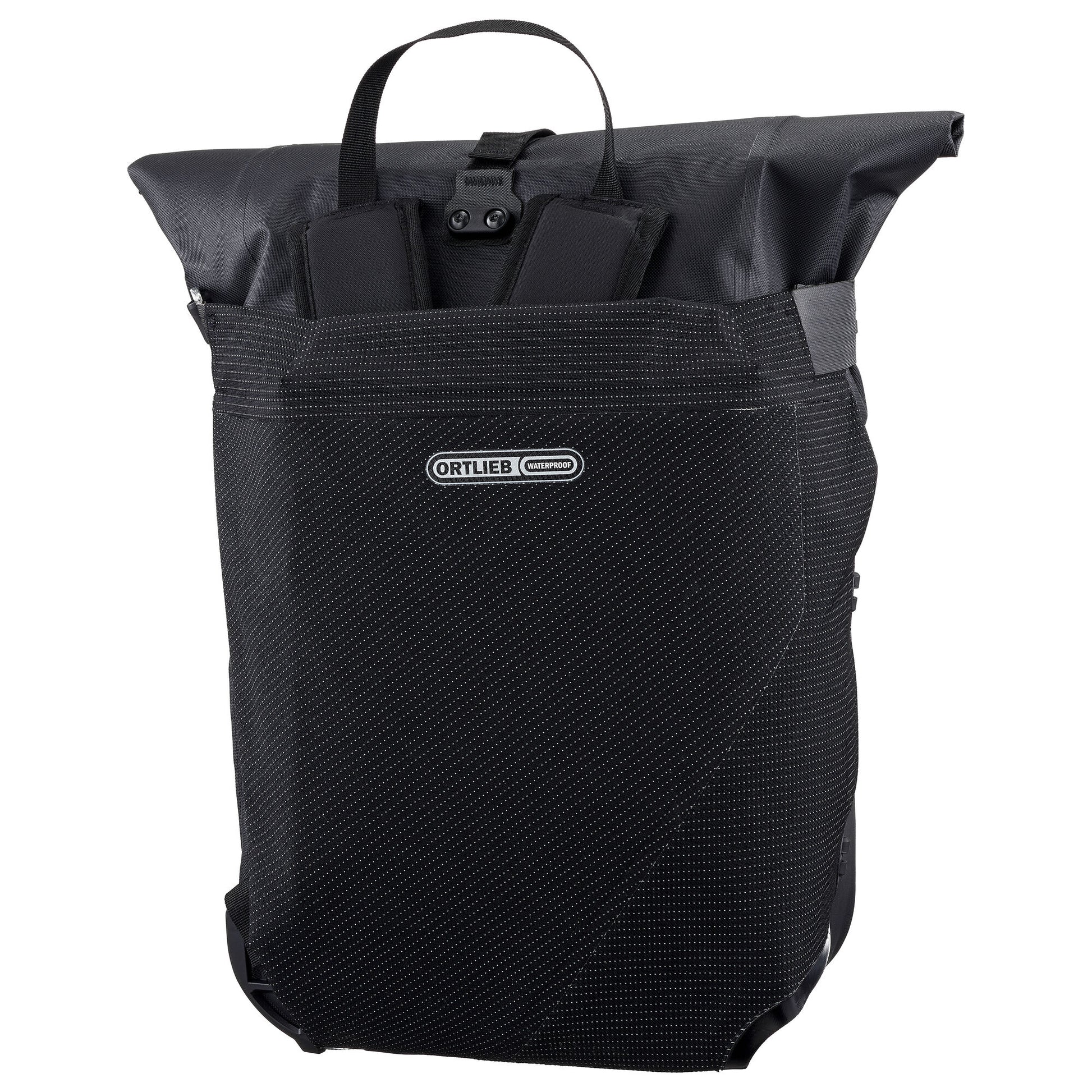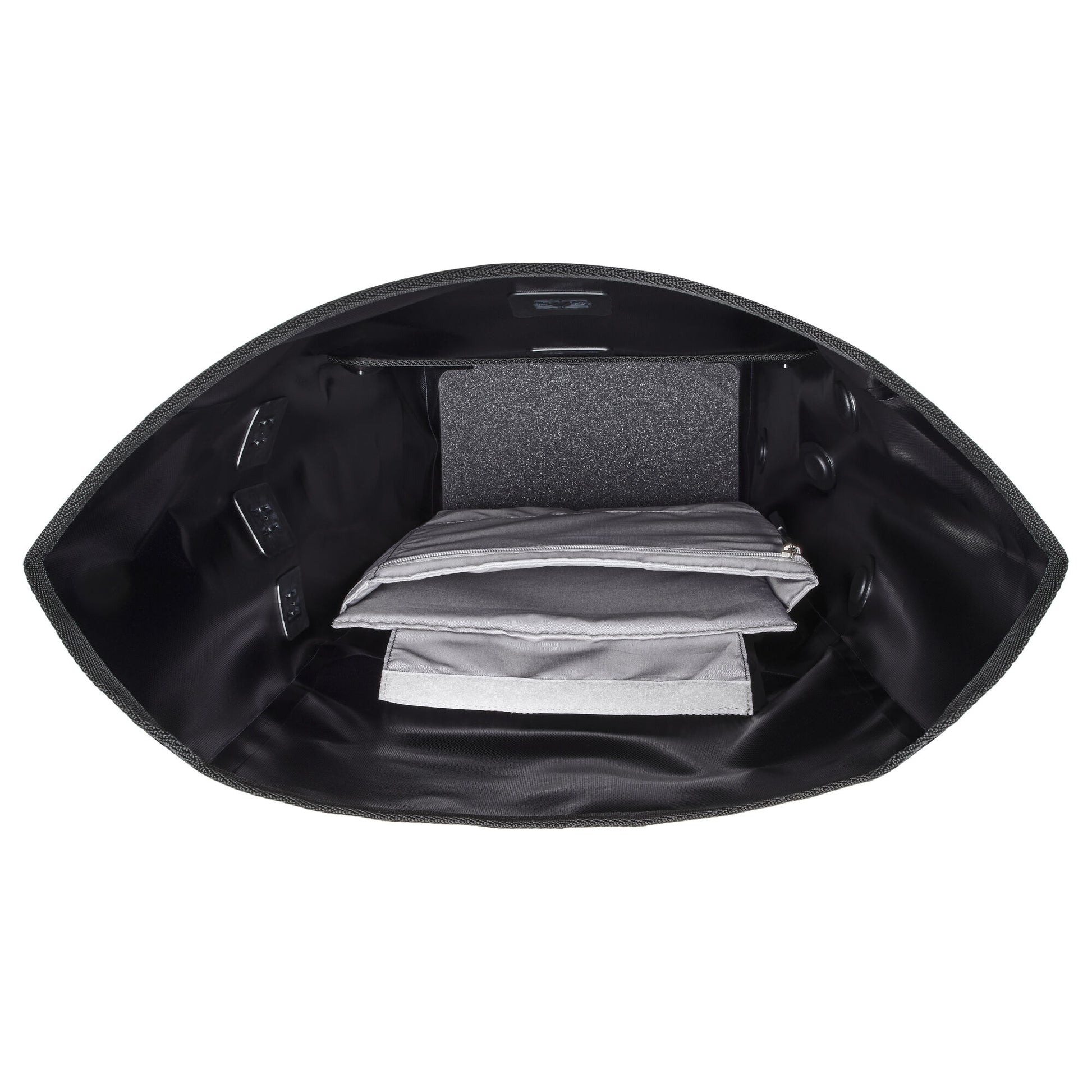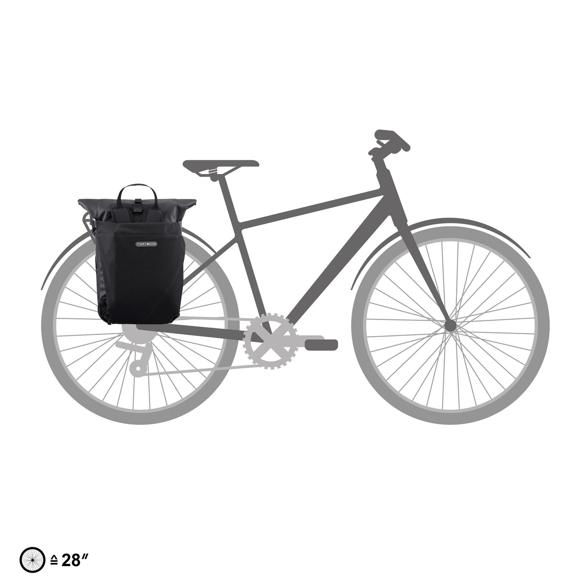 Fitted with the Flap High Visibility, the innovative hybrid of back pack and bike bag becomes the Vario High-Vis. This is thanks to the material on the flap with its integrated reflective thread to provide greater visibility in road traffic. On one side of the bag is the tried and proven Quick- Lock2.1 mounting system for the luggage rack and on the other side a back carrying system with ergonomic shoulder straps. Depending on the current use, the flap covers and protects the side that is not needed at that time. With its integrated pocket, the flap provides additional storage space. There is room in the outer pocket with zipper for small equipment such as smartphones or keys. Inside the waterproof multitalent is a padded laptop compartment than can be accessed via the well-established roll closure. The Vario High-Vis is of course 100% waterproof and produced sustainably in Germany.