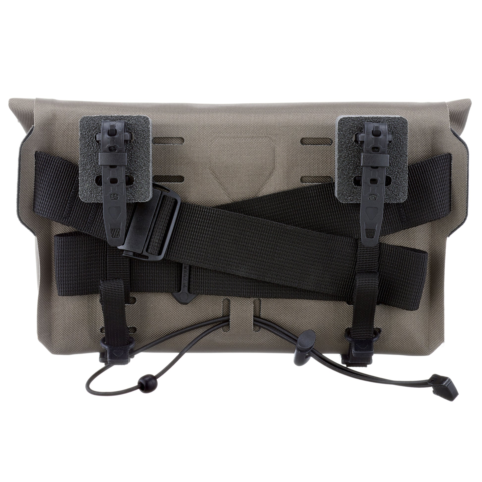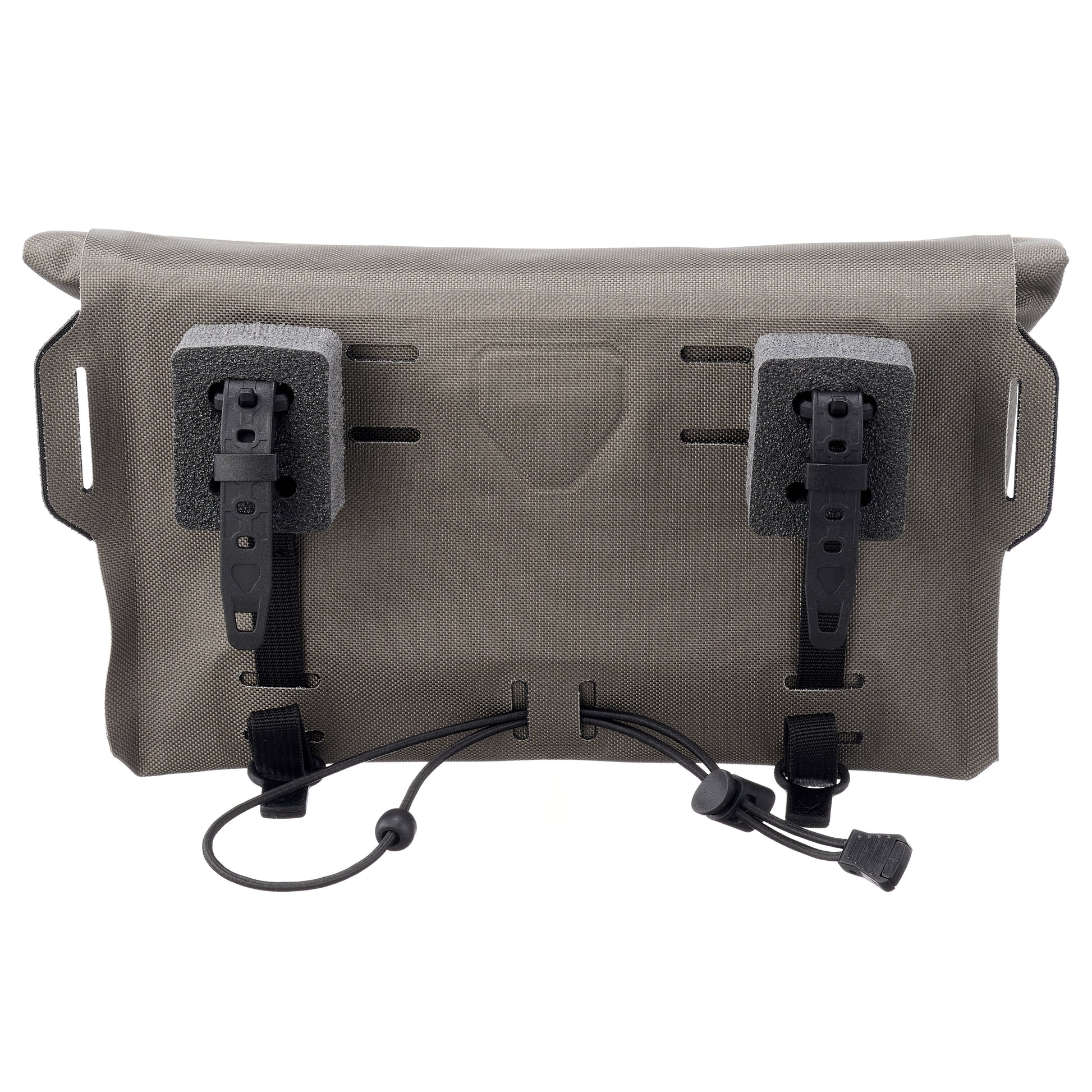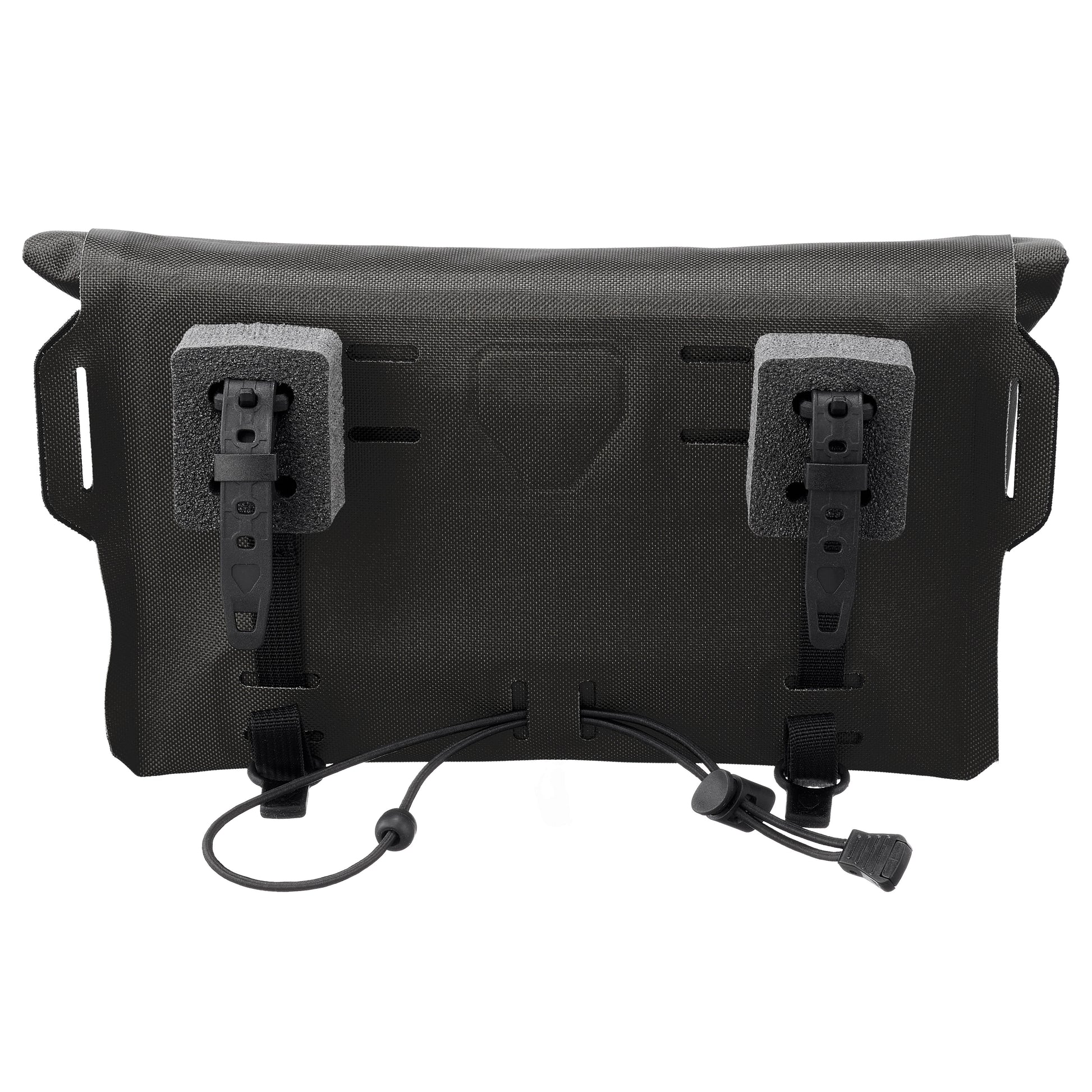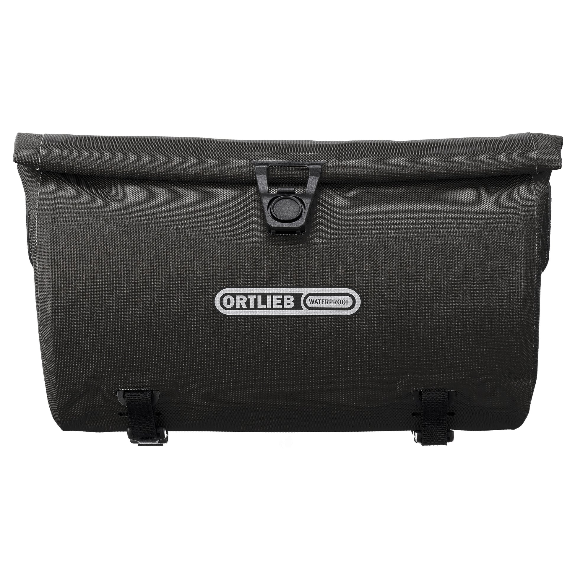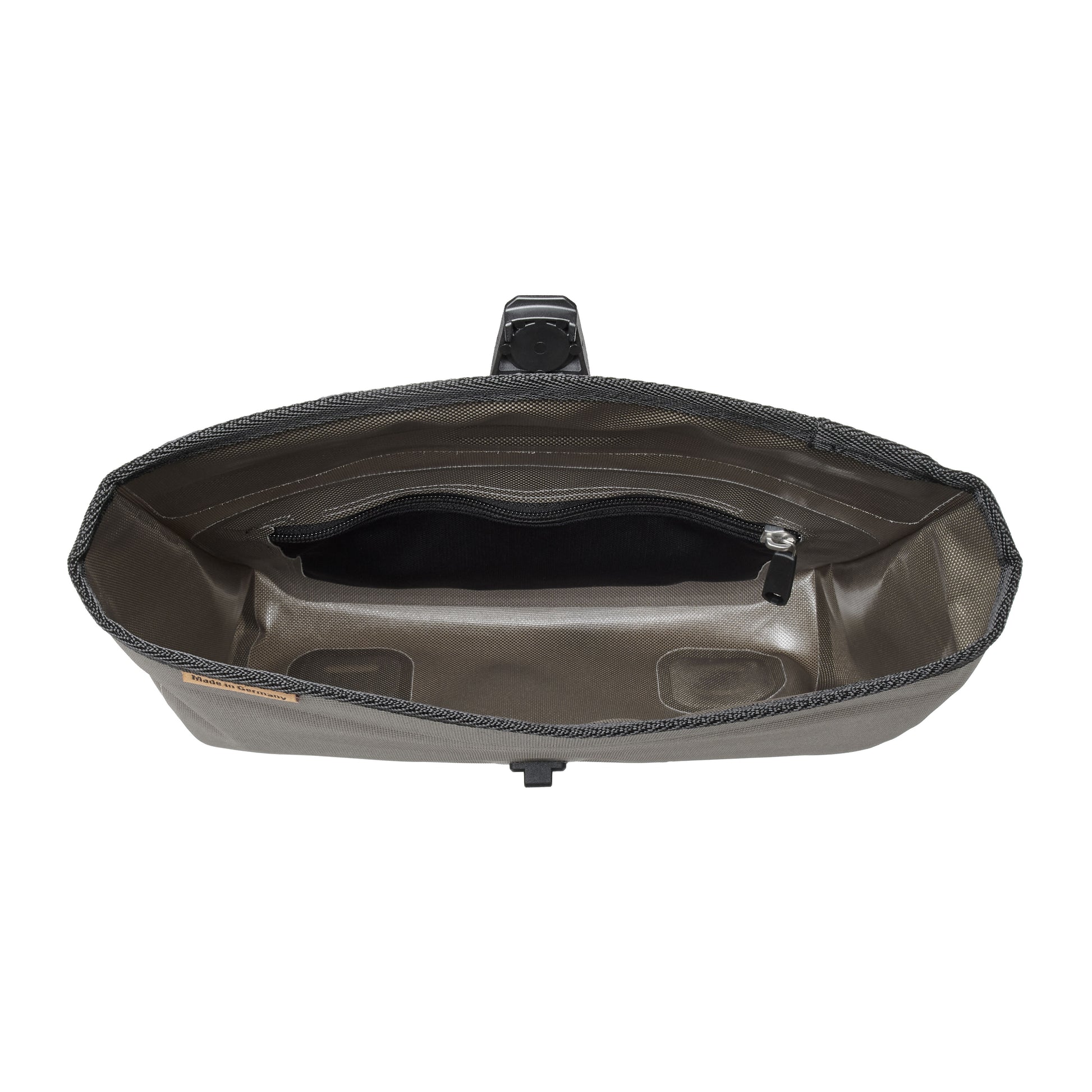 Waterproof handlebar bag that can also be used as a sling bag; quick access to contents via reinforced roll closure with magnetic-mechanical fastening; mounting on handlebars using O-straps; detachable volume extension straps; detachable shoulder strap; PU-coated nylon fabric; incl. mesh inner compartment with zipper.
